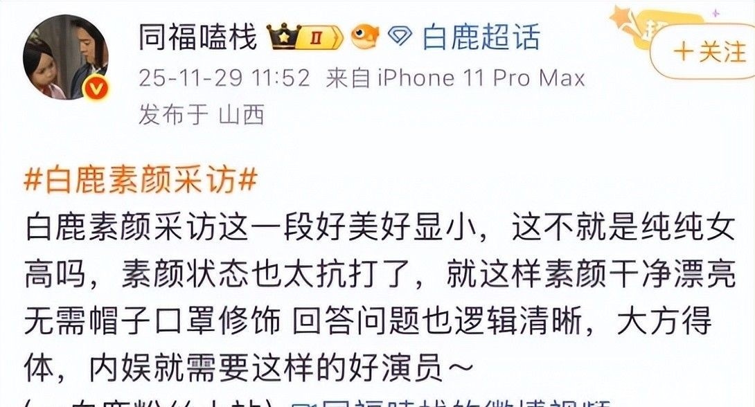 30. 这种贴近生活的幽默与坦率,比精心打造的人设更打动人心。某种程度上,白鹿的成长轨迹正是当代女演员生存现状的真实写照。